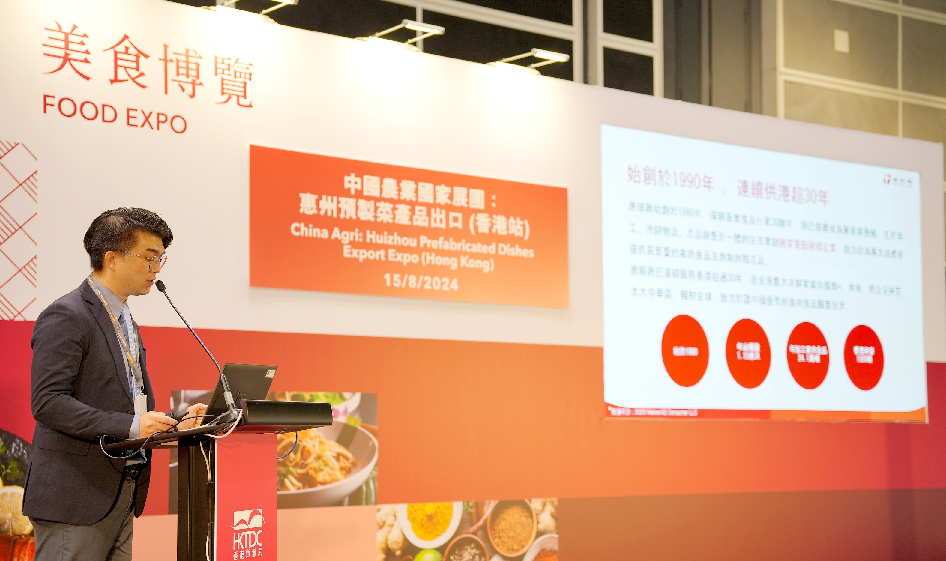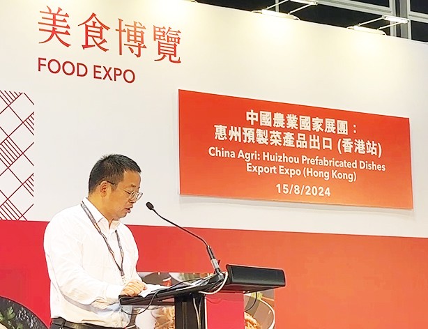 展會期間,唐順興受邀參加了惠州預制菜產(chǎn)品出口(香港站)交流活動。農(nóng)業(yè)農(nóng)村部農(nóng)業(yè)貿(mào)易促進中心、省農(nóng)業(yè)農(nóng)村廳、省農(nóng)業(yè)對外經(jīng)濟與農(nóng)民合作促進中心、惠州市農(nóng)業(yè)農(nóng)村局等相關領導、行業(yè)協(xié)會專家及企業(yè)代表們共同出席了本次交流會。交流會針對預制菜出口展開專題討論并進行了惠州預制菜企業(yè)推介活動,宣傳廣東優(yōu)質(zhì)的農(nóng)產(chǎn)品,推動企業(yè)開拓港澳及國際市場。惠州市農(nóng)業(yè)農(nóng)村局副局長陳洪同志表示,香港是重要的國際貿(mào)易港,擁有開放的市場環(huán)境、便捷的交通網(wǎng)絡和完善的商業(yè)體系。強調(diào)了加強兩地交流,加快推動預制菜、“粵字號”美食“入灣出海”的重要性 !