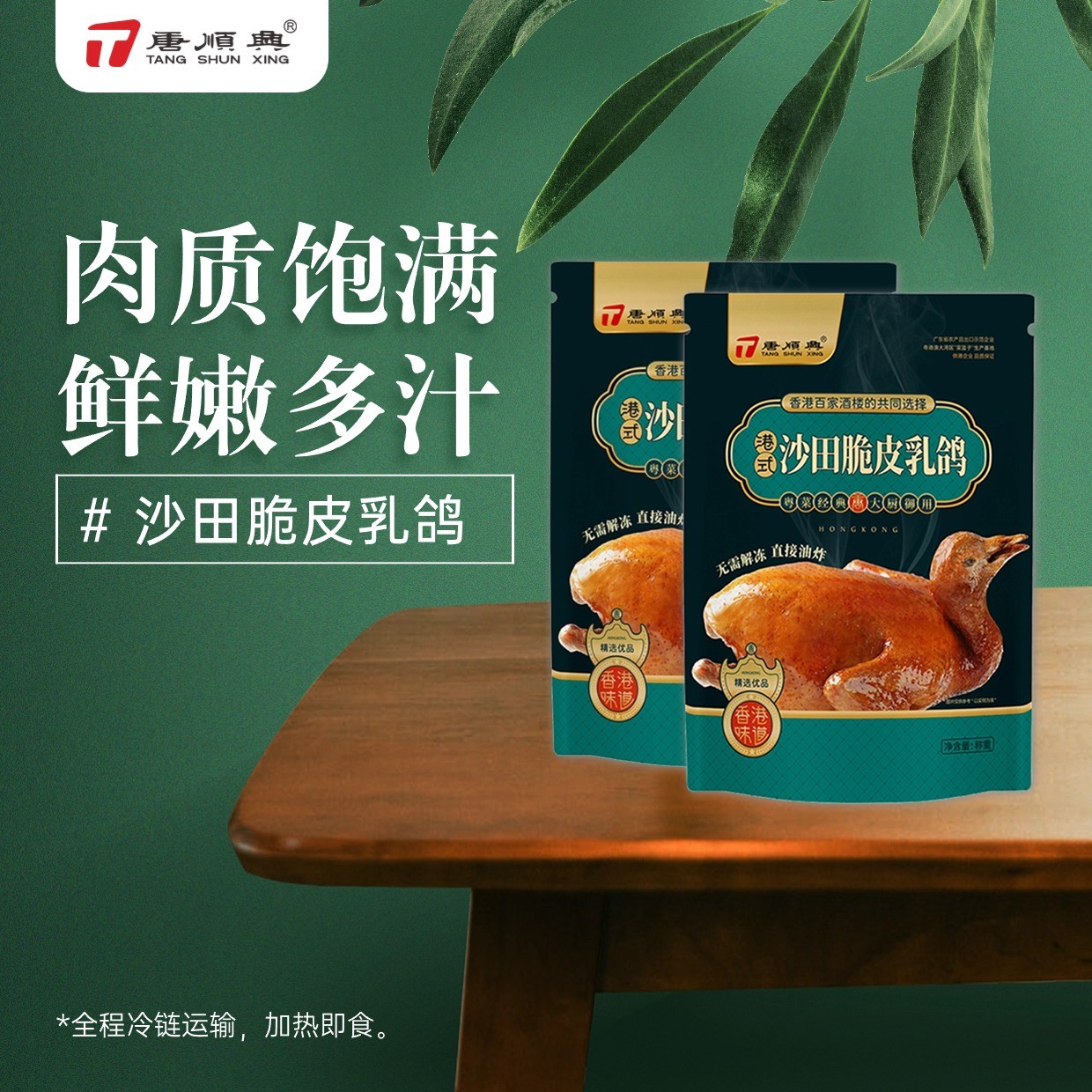 唐順興品牌人氣大單品——脆皮乳鴿,暢銷香港超30年!在香港流傳著"香港每消費10只鴿子,7只來自唐順興”的行業(yè)佳話。憑借著出色的產(chǎn)品實力,在2023年雙十一獲得了天貓榜單類目銷量第一的好成績,更在2024年胡潤中國預制菜生產(chǎn)企業(yè)百強榜暨大單品榜中穩(wěn)居TOP1,斬獲2024全國預制賽爭霸賽“十佳預制菜美味榜等殊榮!