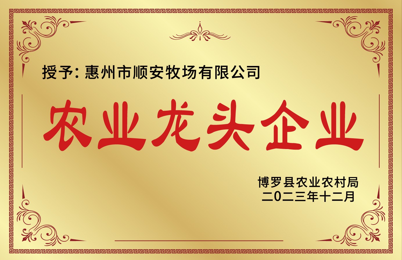 2023年12月,博羅縣農業農村局正式公布了一項重要決定,授予惠州市順安牧場有限公司“縣級農業龍頭企業”榮譽稱號,以表彰公司在農業產業化發展及鄉村振興中所做出的突出貢獻與卓越成績。
