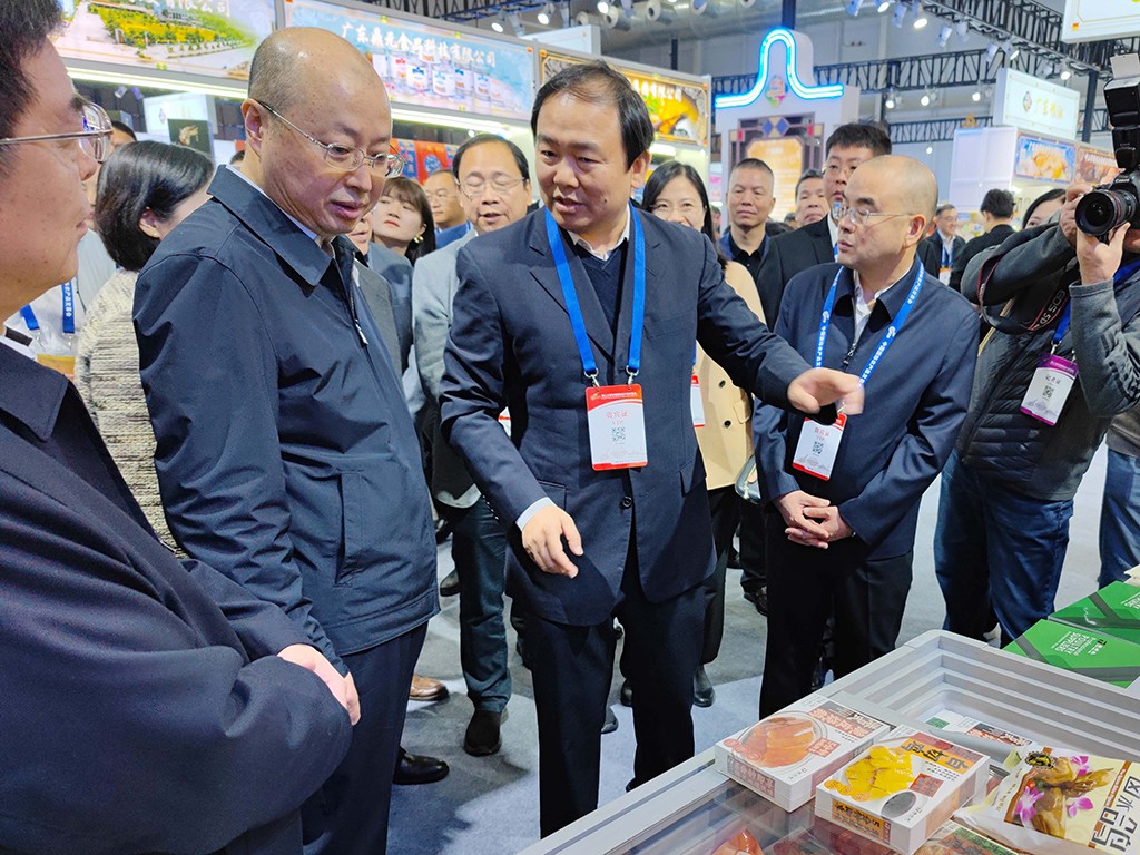 在中鐵青島世界博覽城12萬平方米的展示空間內,來自各地的特色農產品琳瑯滿目。廣東省展區以“灣區品質 全球共享”為主題,展示了豐富的當地特色農產品。唐順興攜港式燒臘系列等熟食產品參展,甫一亮相,便受到廣泛關注。