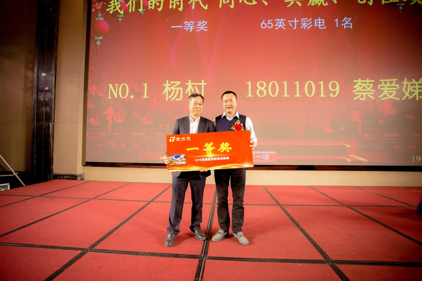 ▲ 唐秀齊副董頒發“一等獎”1名(65寸大彩電1臺)